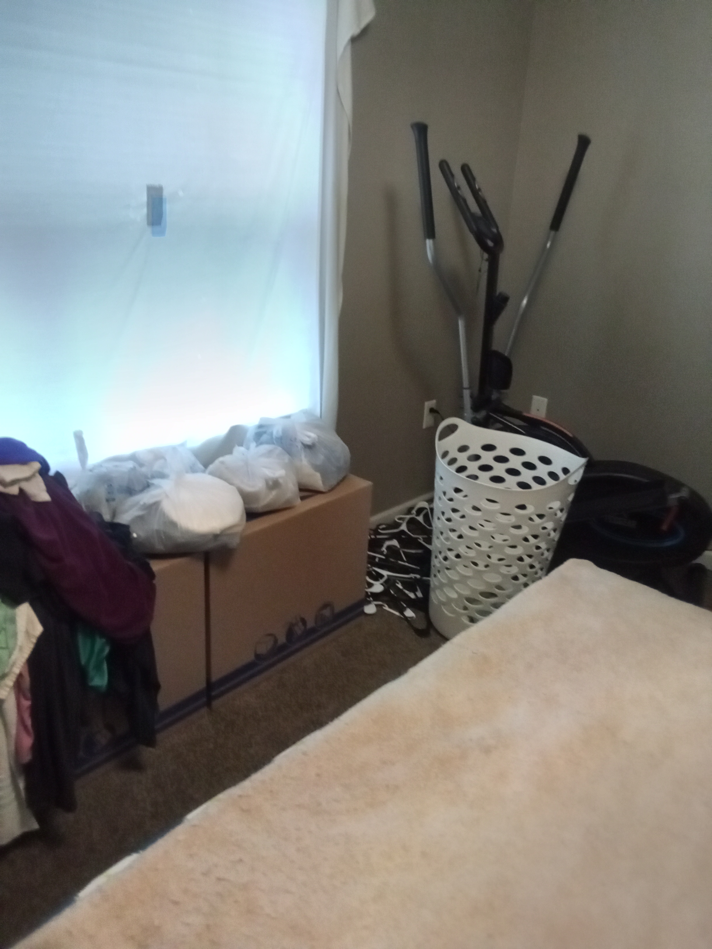 We need two movers and a large moving van (at least 16 or 18 ft long) to assist with the following items: 1 mattress, 1 couch, 1 bed, 3 tables, 3 pieces of furniture, 45 boxes, 4 chairs, 2 washer-dryer units, and 1 desk. There are no stairs at either location.