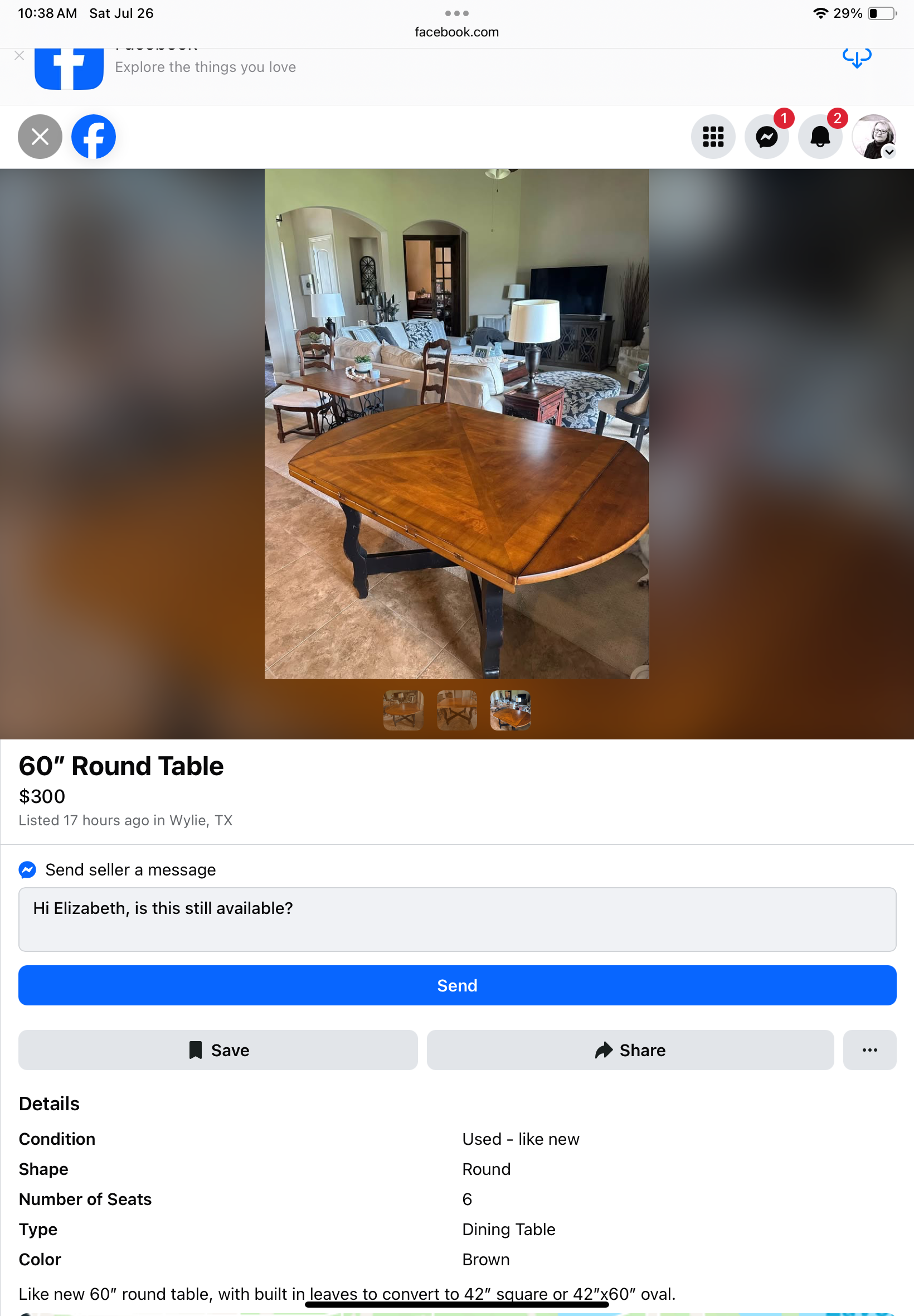 We need to move one table. It is recommended to have two movers for this job to ensure safe and efficient handling.