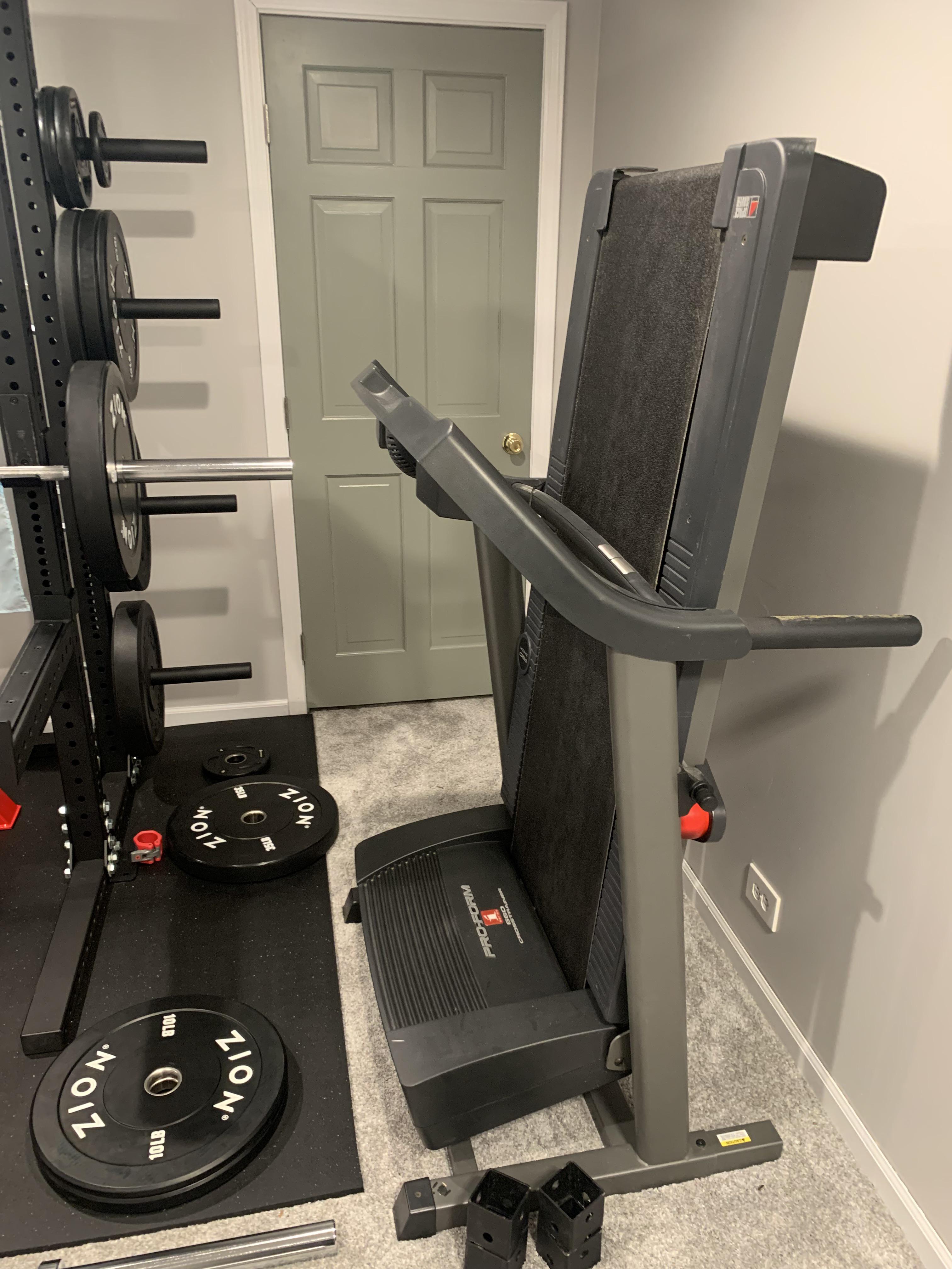 I need two movers to deliver a couch I bought in Chicago to my address in LaGrange. At the LaGrange location, the couch should be placed in the garage. Additionally, I need a treadmill moved from the basement to the garage at the same LaGrange address. Feel free to keep the treadmill, as it is still operational.