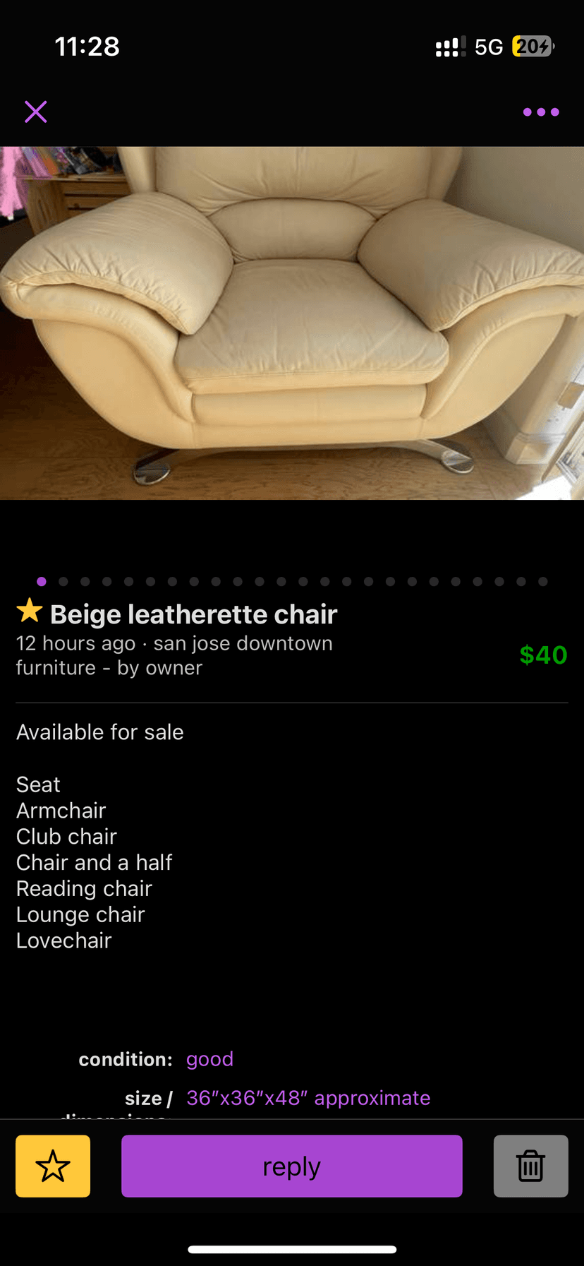 Need to move one chair. I will provide one helper, and the seller will assist with loading. I will help unload at the destination. Dimensions are available in the photo. I am available anytime on Monday.
