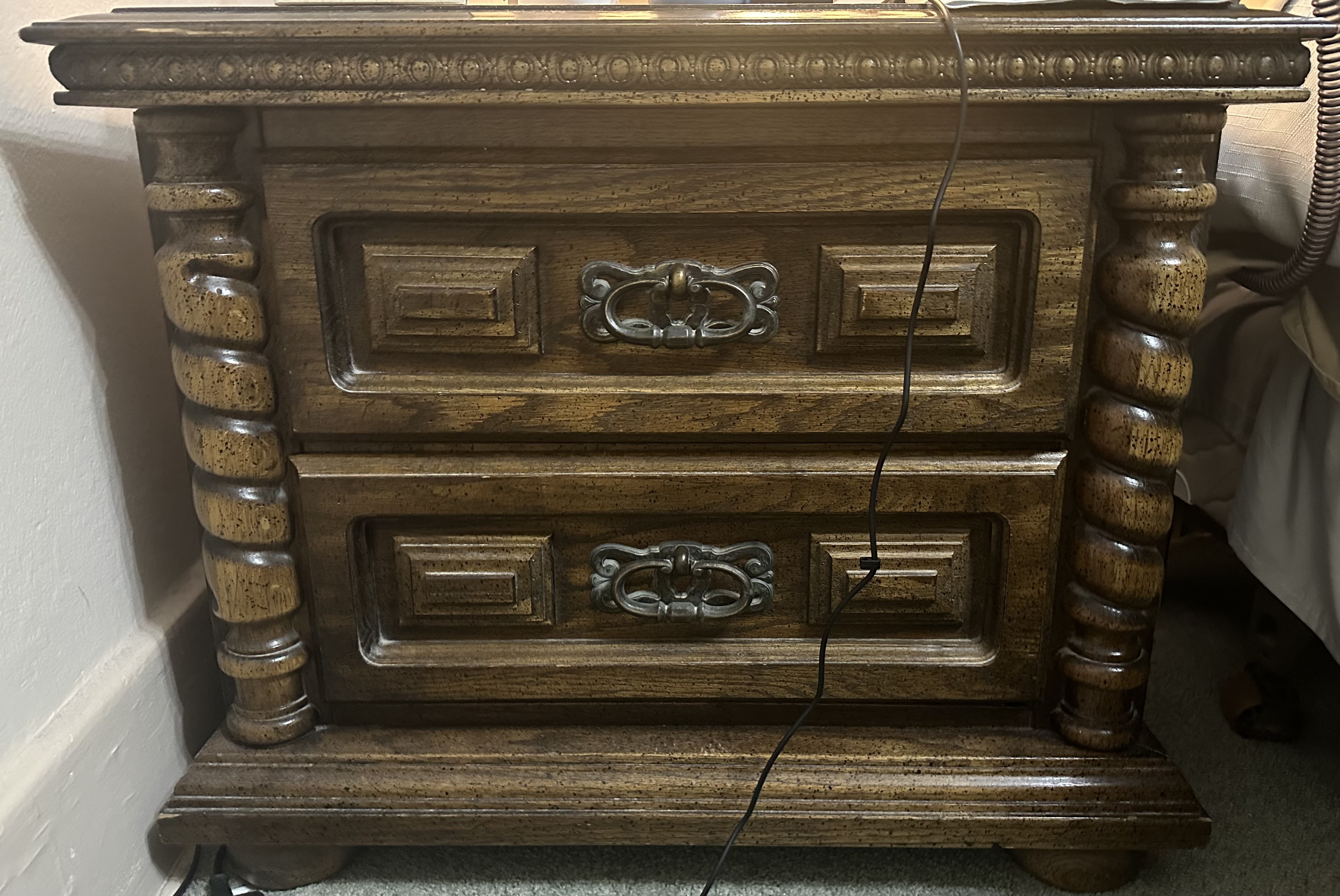 We need to move the following items: 1 bed, 2 dressers, 2 pieces of furniture, and 1 other item. The furniture is heavy solid wood, so we definitely require 2 movers for this job. The items are located on the main floor in the bedroom near the front door of the house. The movers will need to go through a screened-in porch and down 3 stairs to reach the driveway.